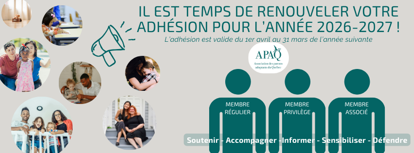 N'hésitez pas à nous contacter pour toutes questions ou problématiques techniques via l'adresse courriel info@parentsadoptants.org